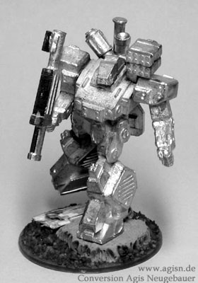 For the Grizzly I wanted also something special: I running pose and some reequipping. The right leg was cut at the knee and repositioned in a running pose. The two rockets pods were glued on top of each other to create the linked look.