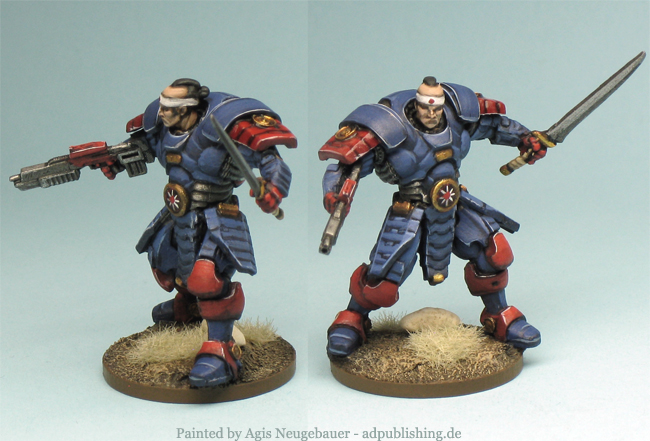 “The Hatamoto are bedressed in heavy armour and often fill the role of bodyguard. It is a great honour for any Mishiman warrior to be chosen by their Liege-Lord for service as an elite guard. As a Hatamoto, the warrior is instated as guard to the higher echelons of Mishima elite, including the Lord Heir himself. Trusted and honoured to an equal extent, this is the highest position any Samurai could ever hope for. These troops are the best infantry that the Mishima Corporation has to offer, with a perfect skill balance of traditional close combat training as well as a high proficiency in firearm use. The Hatamoto represent the absolute, unequivocal masters of warfare in the Mishiman domain.”
