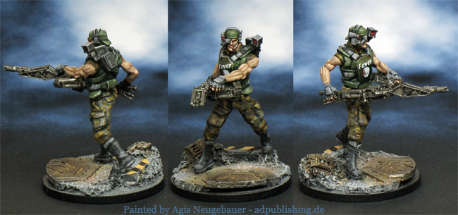 I am deeply impressed by the quality of these small market resin minis, perfect fit, perfect casting! Absolutely recommended if you want generic, tough as nails deep space Marines! We live indeed in splendid times with many quality minis around. For the Gunner and Squad Leader I chose a slightly different camo colour palette. The green was the base colour this time. As usual, the more you paint minis the more you see flaws are strengths. With these minis - only positive observations, I just love the metal prosthetic left arm.