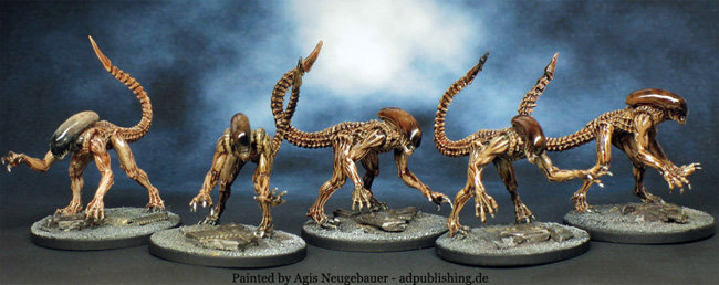 Even the game rules makes a good impression, not to mention the game components! So after receiving the game 3 days ago I started with some Alien stalkers to try some speed painting techniques, the minis are finished under 25 Mins each.