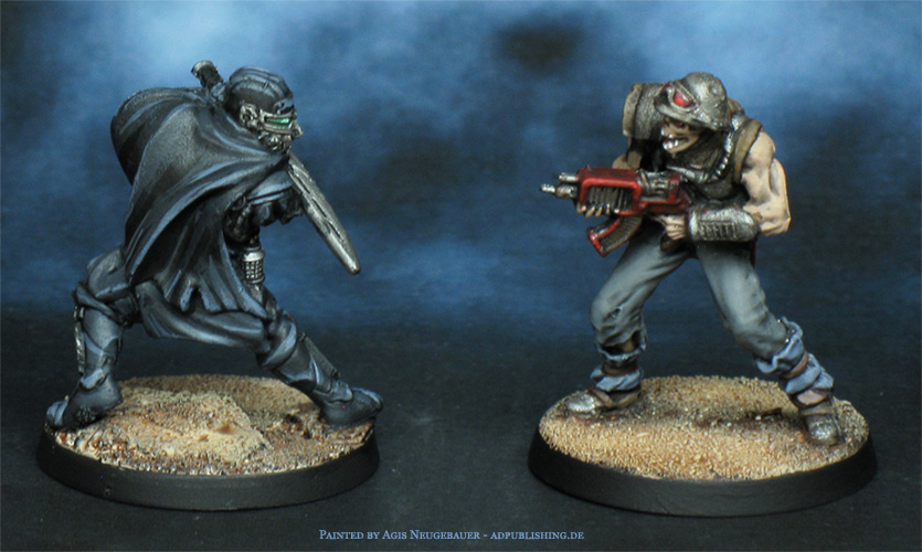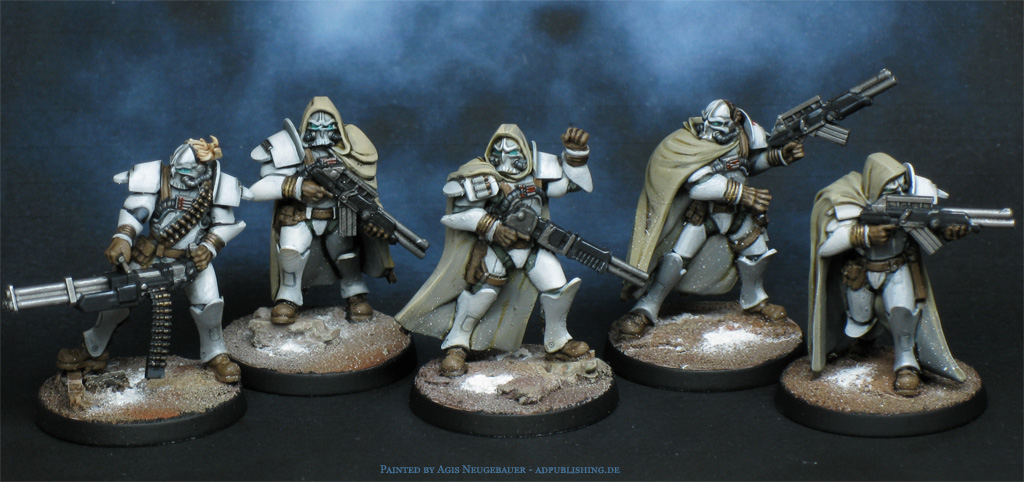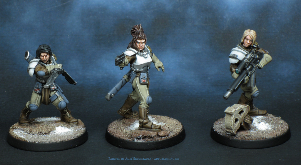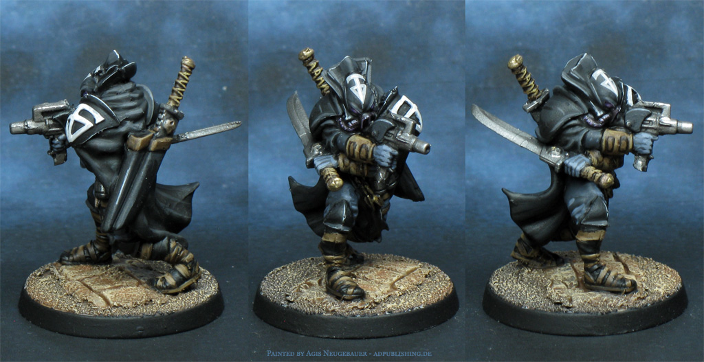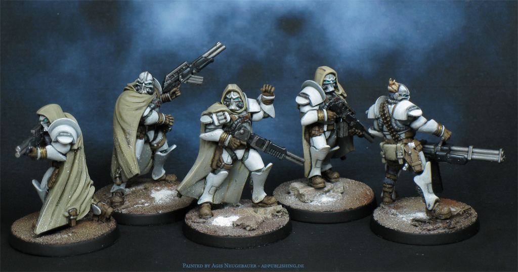 The all-new Bauhaus Étoiles Mortant. The sniper is a minor conversion; it originally came with a bearded male head, which I immediately disliked. Time for a head swap. What made it easier was that the body was more or less gender-neutral.