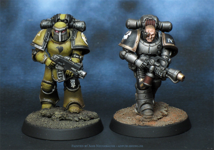 Minis sculpted (probably) by Scibor. I bought the minis quite cheap on ebay. IMO one of the best aftermarket Sanguinius sculpts! Since I still do not like NMM I used good old fashioned gold and brown ink.