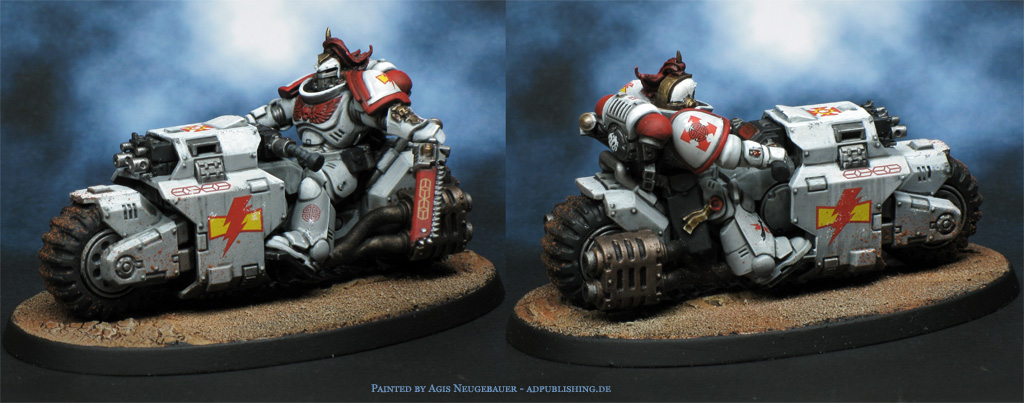 Kulan Temür – First Rider of the Talons The fastest of the three, Kulan Temür lives for the opening charge. He marks priority targets for Sergeant Altan Kharak, driving deep into enemy formations to fracture their cohesion moments before the Talons strike. Mk III Horus Heresy head swap; chainsword and right shoulder pad from the White Scars Accessory Pack.